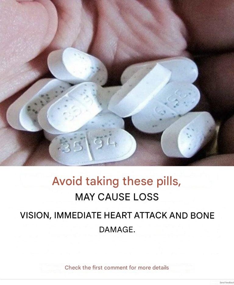 That statement is fear-based clickbait. No reputable medical guidance says “avoid these pills or they will cause immediate heart attack, vision loss, and bone damage” as a general rule.