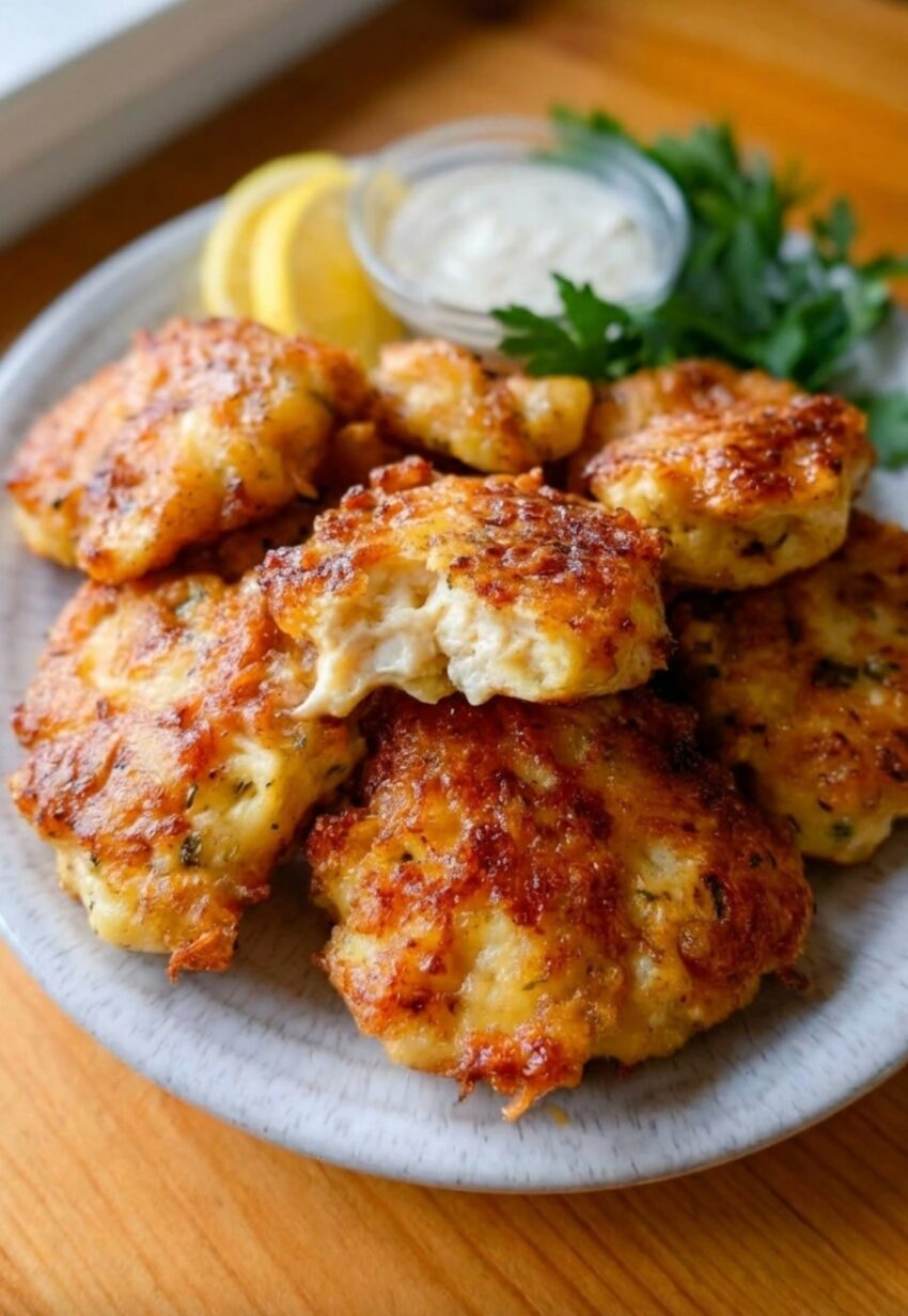 Chicken Fritters are crispy, savory patties made with chopped or shredded chicken, mixed with simple ingredients, then pan-fried until golden. They’re great as a snack, appetizer, or quick meal. 🍗🥘