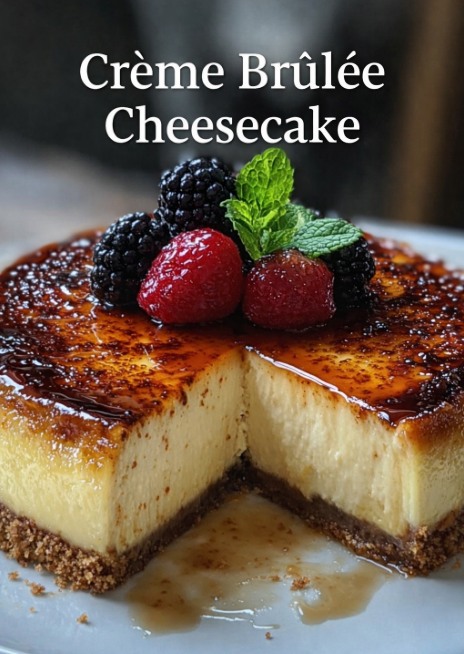 Here’s a decadent, crowd-pleasing dessert: Crème Brûlée Cheesecake 🍮🧀 — rich, creamy, with a caramelized sugar top.
