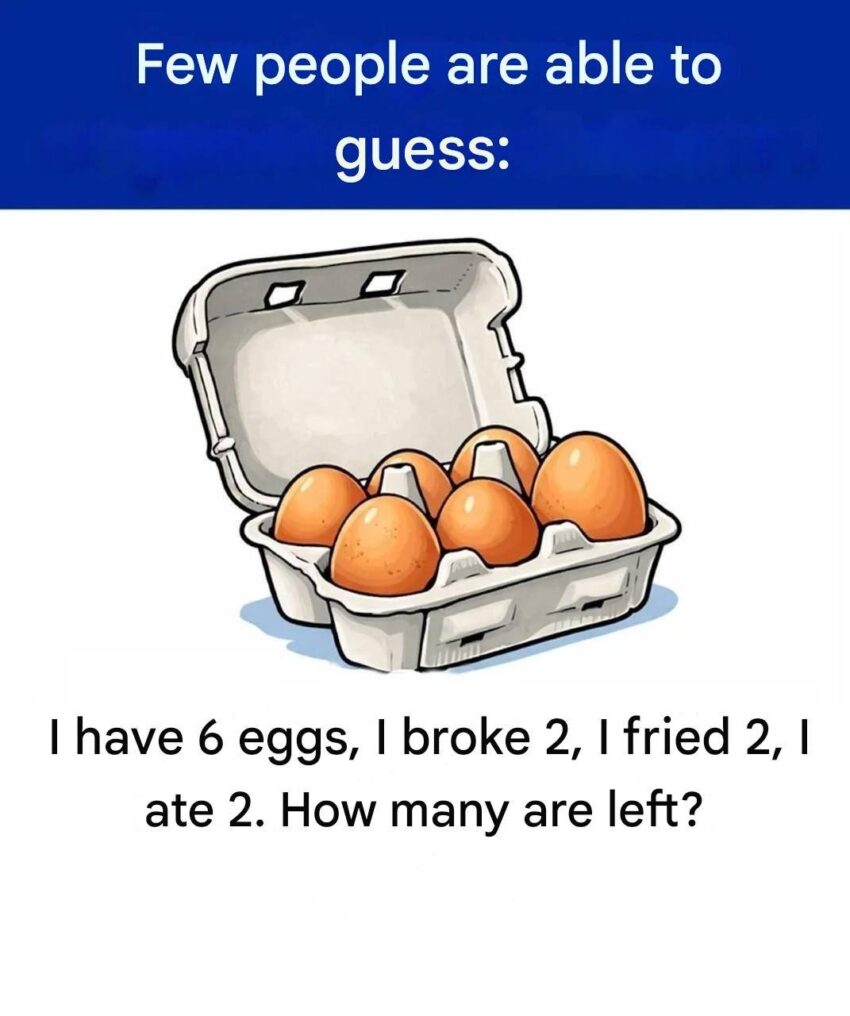 - You broke 2, fried 2, and ate 2 — but these are the same 2 eggs
