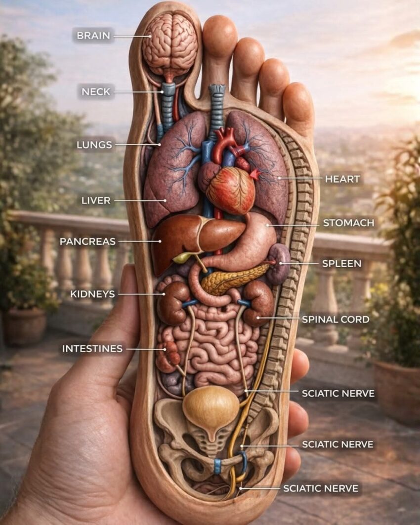 • Heel β†’ Lower back, intestines, sciatic nerve