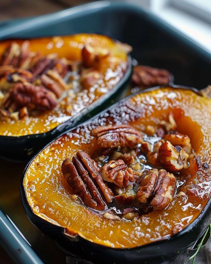 Oh, that sounds like a perfect cozy fall side dish! Here’s a delicious recipe for Maple Pecan Roasted Acorn Squash: