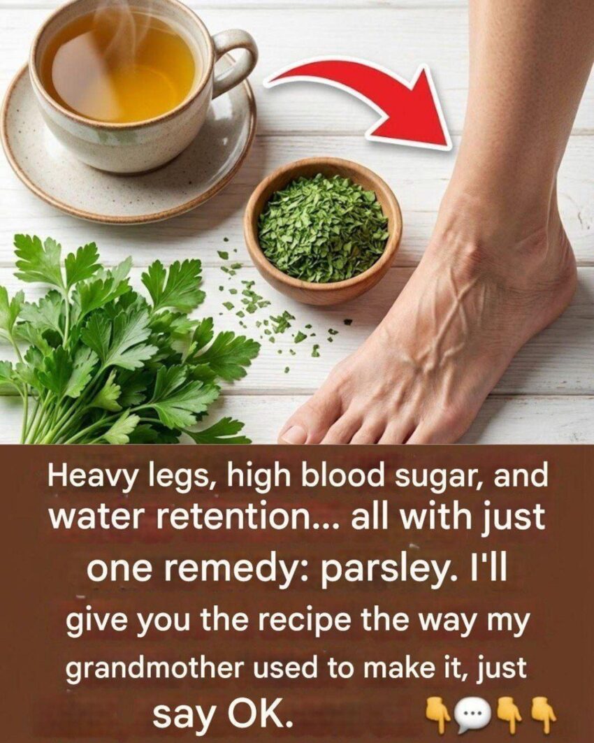 Here’s a detailed and safe explanation about the parsley remedy often suggested for heavy legs, high blood sugar, and water retention, along with realistic guidance: