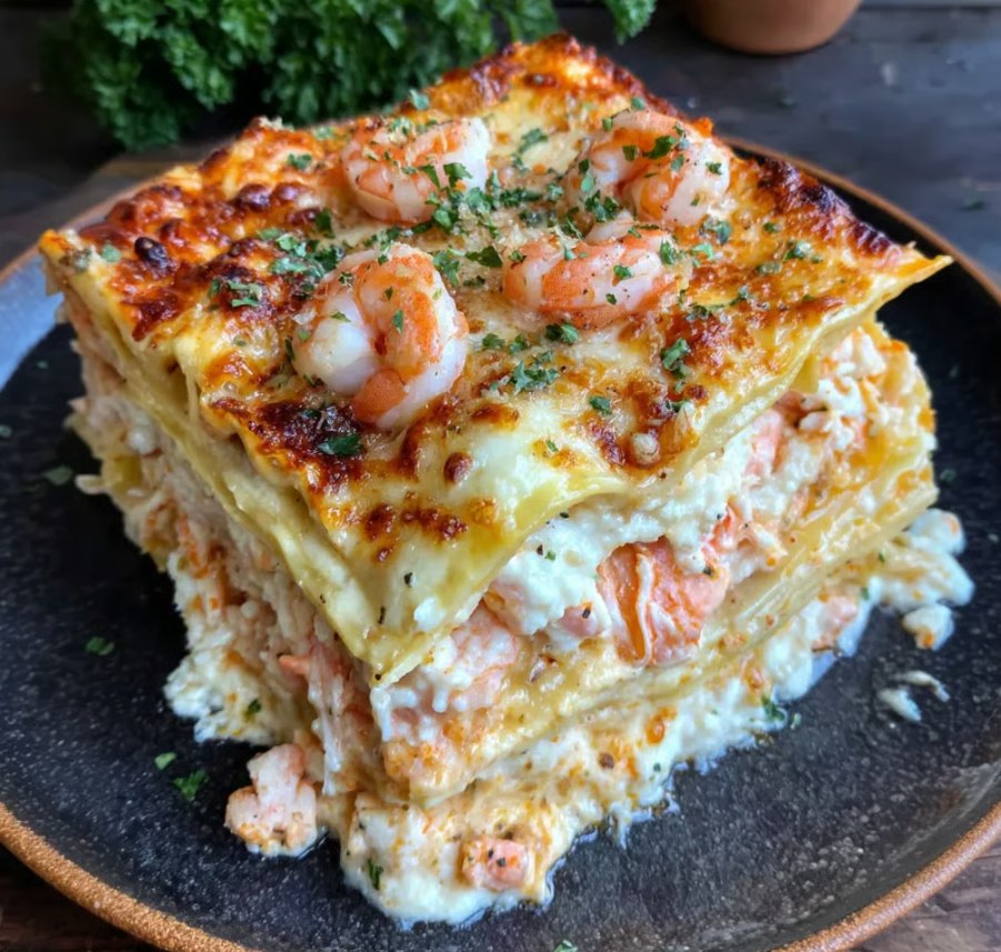 🦐🦀 Shrimp Alfredo Lasagna Stuffed with Salmon & Crabmeat