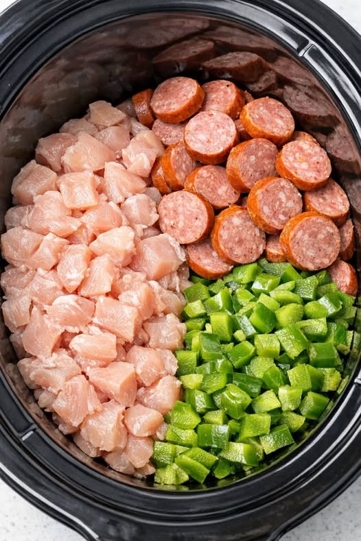 Slow Cooker Chicken and Sausage Jambalaya is a hearty, flavorful Cajun-inspired dish where chicken, sausage, rice, and vegetables cook slowly together with spices for a tender, savory meal. 🍗🌶️🍚