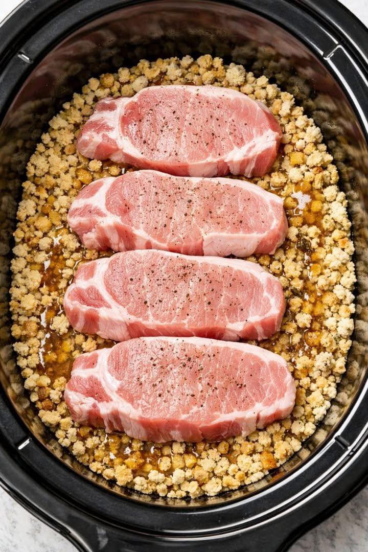 - Put pork chops on top.