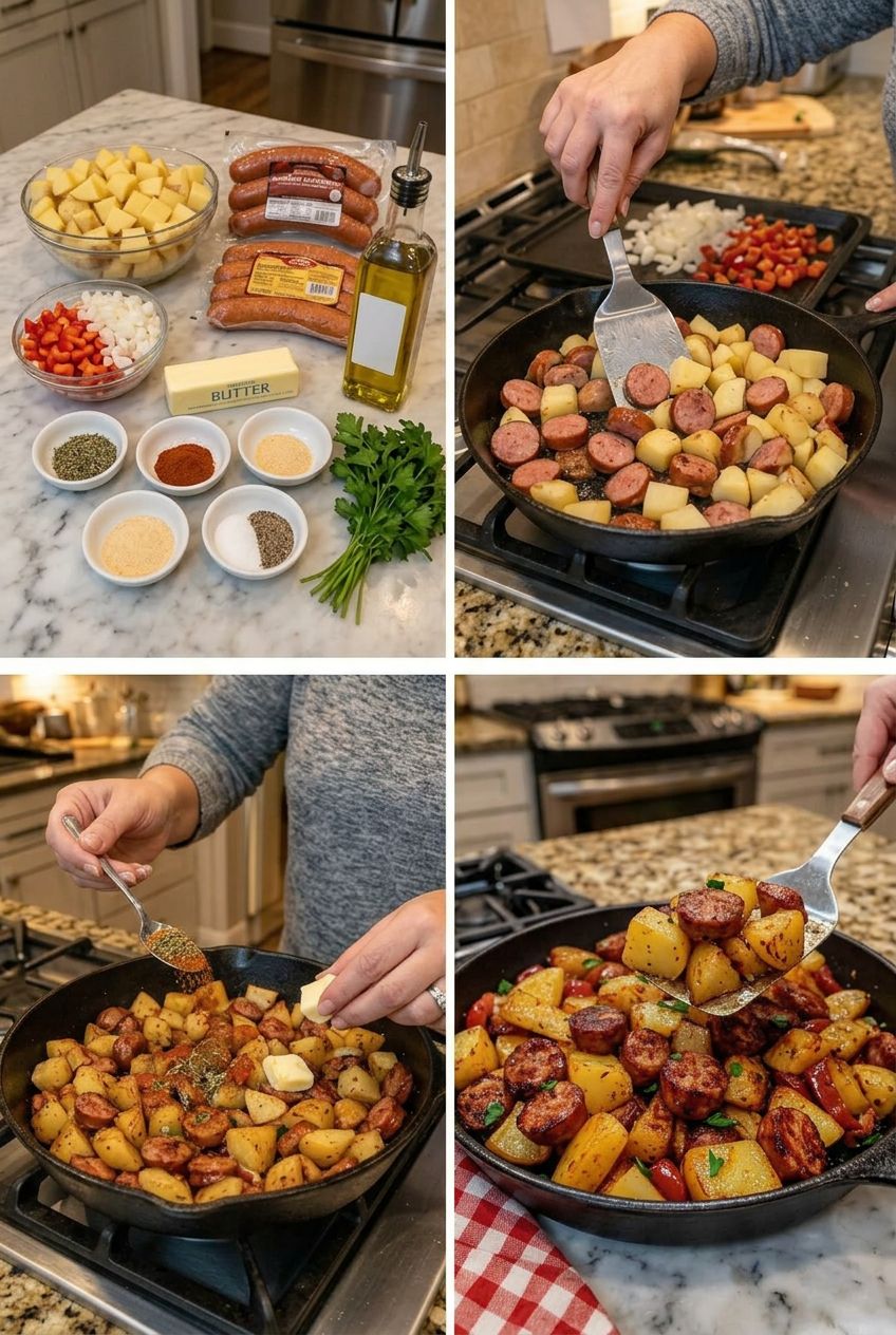 Here’s a classic Southern-style fried potatoes & sausage recipe—crispy, savory, and perfect for breakfast or dinner: