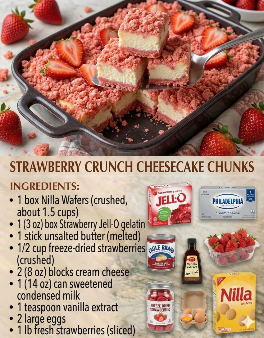 Here’s a delicious, no-bake Strawberry Shortcake Crunch Bars recipe you can make at home — sweet, crunchy, and full of strawberry flavor: