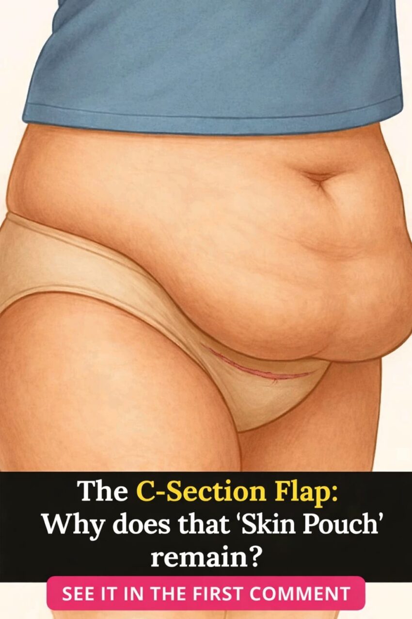 The “C-section flap” or skin pouch that sometimes remains after a Cesarean section happens because of how the skin, fat, and underlying tissues heal after surgery.